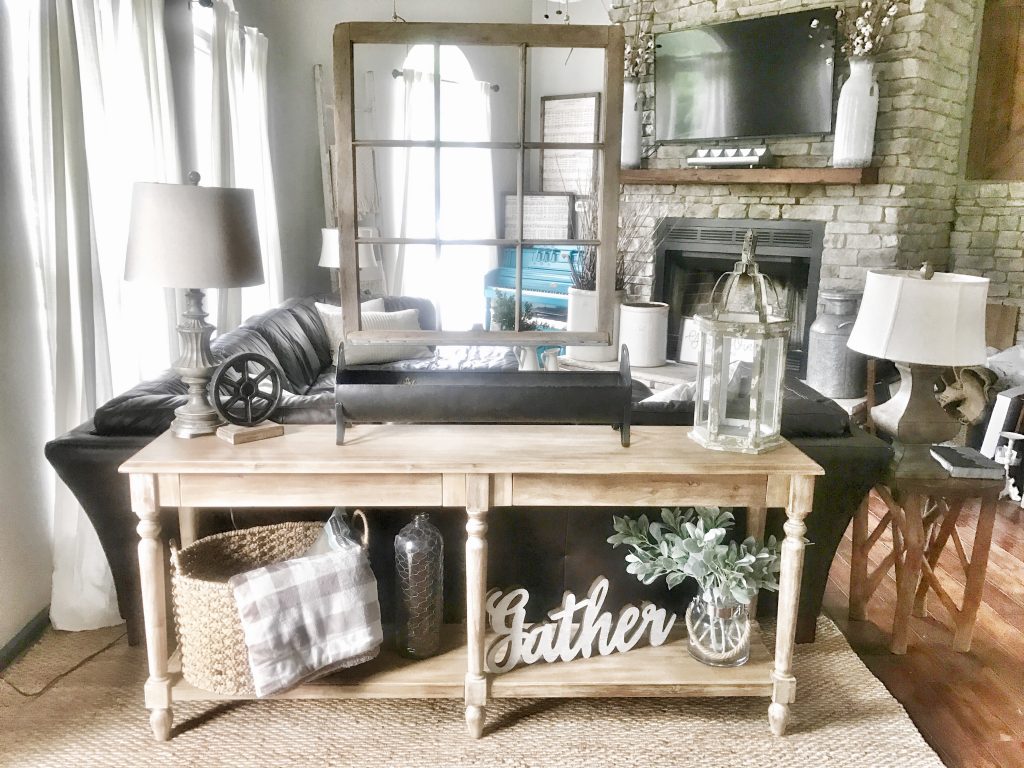 Happy Friday!! We made it!! You guys, I’m so excited to finally share a project that I have been working on for the last couple of months!! This is a client’s house that is an actual farmhouse so naturally it needed a few farmhouse touches. I’ll show you how we created a farmhouse style living room. I had a baby towards the end of it, but luckily my client took our vision and finished things up beautifully!! Today, I’m sharing the living room and TV area reveals for this project. I love seeing our vision come together. It just so happens I was working with the best client’s who listened to my vision for their home and even added a few extra touches that will blow you away.
